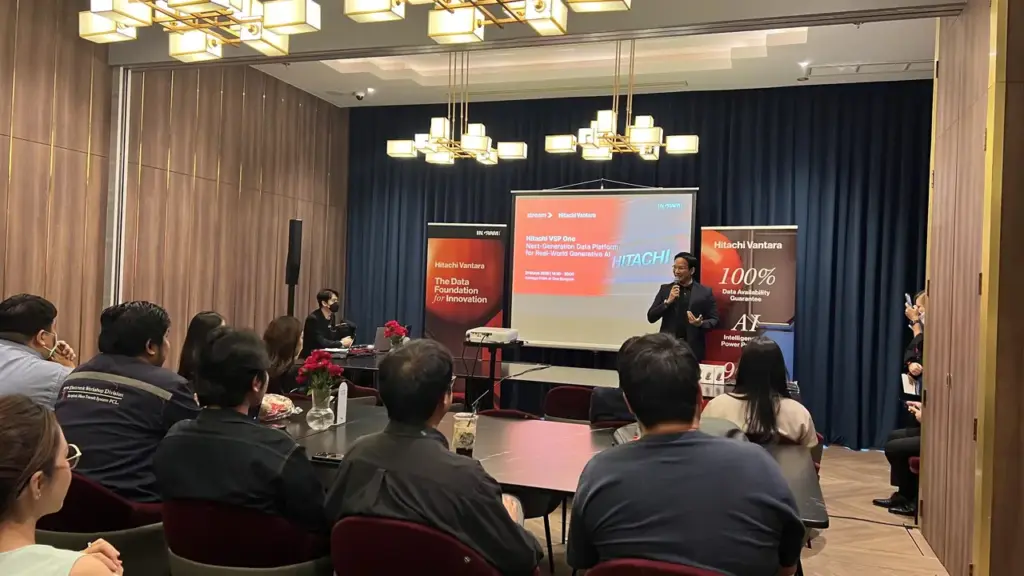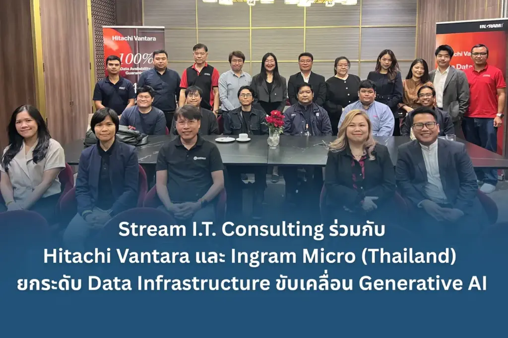 ท่ามกลางกระแสการเติบโตของ Generative AI อย่างต่อเนื่อง และส่งผลต่อการดำเนินธุรกิจในทุกอุตสาหกรรม Stream I.T. Consulting ร่วมกับ Hitachi Vantara และ Ingram Micro (Thailand) จัดงานสัมมนาสุด Exclusive ในหัวข้อ “Hitachi VSP One Next-Generation Data Platform for Real-World Generative AI” แนวทางการเตรียมความพร้อมด้านโครงสร้างพื้นฐานสำหรับการนำ AI ไปใช้จริงในองค์กร ณ Vantage Point at One Bangkok เมื่อวันที่ 31 มีนาคมที่ผ่านมา
