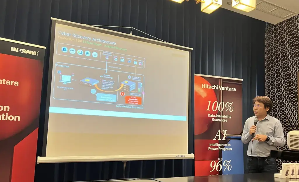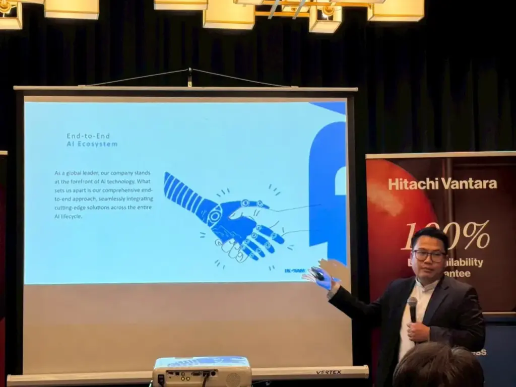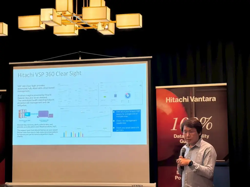 อีกหนึ่งไฮไลต์สำคัญในการนำเสนอศักยภาพของ Hitachi VSP One แพลตฟอร์มข้อมูลยุคใหม่ ที่เปรียบเสมือนเป็น “กระดูกสันหลังของ Generative AI” โดย คุณนิตินันท์ อรรถกรปัญญา DI Sales Partners จาก Hitachi Vantara ร่วมเจาะลึกในหัวข้อ “Next-Generation Data Platform: AI Data Workflow and Cyber Resilience with Hitachi Vantara” ความสามารถของ Hitachi VSP One ในการรองรับ AI Data Workflow อย่างครบวงจร ครอบคลุมทั้งประสิทธิภาพการประมวลผล (Simple Performance) ความมั่นคงปลอดภัยของข้อมูล (Secure Resilience) และความยืดหยุ่นในการขยายระบบ (Sustainable Scalability)